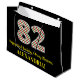 This fun and simple Christmas-themed and birthday-themed December 25th birthday gift bag design features a large number "82", with a green, white, and red stripes pattern. It also features the message "Happy 82nd Birthday & Merry Christmas,", and a customisable name. The background is coloured black. A gift bag like this might be fun to use when wrapping presents that are being given to somebody whose eighty second birthday falls on December 25th (Christmas Day). [~Z0000407]