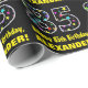 This fun birthday-themed wrapping paper design features a large number "85", filled with a pattern of decorative star shapes of various colours and sizes. It also features the message "Happy 85th Birthday,", and a customisable name. The background is coloured black. Fun wrapping paper like this might be used when wrapping presents being given to somebody in celebration of their eighty fifth birthday. [~Z0000429]