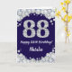 Happy 88th Birthday Navy Blue and Silver Glitter Card