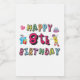 Happy 8th Birthday. Funny and cute Birthday design with lovely teddy bear holding a gift and a funny pencil writing the birthday wishes. A perfect match for clothing, shirts and accessories.