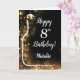 Happy 8th Birthday Black and Gold Glitter Wine Card with personalised name. For further customisation, please click the "Customise it" button and use our design tool to modify this template.