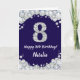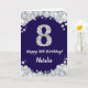 Happy 8th Birthday Navy Blue and Silver Glitter Card