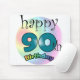 Gelukkige 90ste verjaardag muismat Leuk als cadeau voor iemand die negentig is geworden. Regenboog kleuren. 90 is in de kleur blauw.