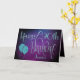 A decorative typographical design with a mystical feel to send your 90th Birthday wishes. Happy Birthday is set in an elegant script typography with ornate swashes, in shades of blue, and the age is in a cordinating typeface along with your recipient’s name, on a watercolor style background in shades of purple. You can change the message inside to your own greeting if you wish and easily personalize the age and name on the front. Faux sparkle teal balloons add the perfect finishing touch on the front! The same colored background continues on the inside.