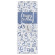 This over-the-hill numeric design is a blue and white random number pattern with milestone number 90 repeated in varied sizes and angles in an all-over print. There is a printed ribbon banner and gift tag with text templates so you can easily personalise them with your own words, name, initial, or monogram.