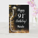 Happy 91st Birthday Black and Gold Glitter Wine Card