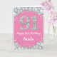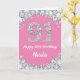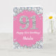 Happy 91st Birthday Pink and Silver Glitter Card with personalised name. For further customisation, please click the "Customise it" button and use our design tool to modify this template.