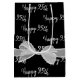 Happy 95th birthday text and white sheer bow on black background.