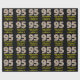 This fun and simple Christmas themed and birthday themed December 25th birthday wrapping paper design features a large number "95" with a green, white, and red stripes pattern, along with the message "Happy 95th Birthday & Merry Christmas,", and a personalised name. The background is coloured black. Wrapping paper like this might be used when wrapping gifts that are being given to somebody whose ninety fifth birthday falls on December 25th (Christmas Day). [~Z0000406]