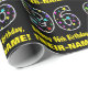 This fun birthday-themed wrapping paper design features a large number "96", filled with a pattern of decorative star shapes having various sizes and colours. It also features the message "Happy 96th Birthday,", and an editable name. The background is coloured black. Birthday themed wrapping paper like this might be used when giving a gift or present in celebration of somebody’s ninety sixth birthday. [~Z0000429]