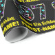 This fun birthday themed wrapping paper design features a large number "97", filled with a pattern of star shapes of various colours and sizes. It also features the message "Happy 97th Birthday,", and a customisable name. The background is coloured black. Birthday themed wrapping paper like this might be a fun way to wrap a gift or present being given to somebody who is celebrating their 97th birthday. [~Z0000429]