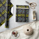 This fun birthday themed wrapping paper design features a large number "99", filled with a pattern of decorative star shapes of various sizes and colours. It also features the message "Happy 99th Birthday,", and an editable name. The background is coloured black. Birthday themed wrapping paper like this might be used when giving a gift or present in celebration of somebody’s ninety ninth birthday. [~Z0000429]