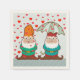Two cute Gnomes Graphic Design. One who's happy and one who's grumpy and holding an umbrella so that the rain falling hearts won't touch him. It's raining hearts and love!