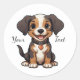 Happy Animated Puppy Illustration Customizable Classic Round Sticker