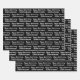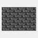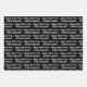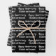 This black and white anniversary wrapping paper says "Happy Anniversary" in a cursive script. The text you can change to the names of the husband and wife is not in script. This is black wrapping paper with white text. All text can be edited or deleted.