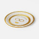 Happy anniversary, gold dots and infinity symbol paper plate. Happy Anniversary text can be personalised for wedding, shower, friendship, date, engagement or any other celebration.