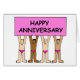 Four cartoon men standing in a row, wearing nothing but skimpy pink underpants. The men are holding up a large pink sign that says 'Happy Anniversary'. The image is set against a white background.