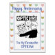 Optician cartoon. Optician gives customer a bill which resembles an eye test chart. Personalise with your own details and message. Birthday card for an optician.