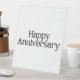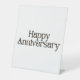 This pedestal sign showcases the words "Happy Anniversary" in a unique print font with gold letters black outline. Printed with high-quality, full-colour digital print available in 4 sizes made of 1/16" white plastic polystyrene 10" x 12" display with 3" pedestal base.
