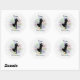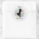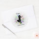 Remember the wedding of your dreams as he swept you off your feet. Say "Happy Anniversary" with this round sticker. Enjoy that day you whole life. The bride and groom silhouette in front of a rays of colour.