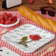 Happy Anniversary | Your text Pattern | Red Rose Paper Plate