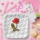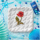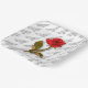 The design is floral photography of one red rose and stem. The image was cut out and placed over a white background with your text pattern.
