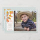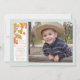 A new, fall invitation with a large photo window. The soft grey-green background features a torn-edge panel with autumn leaves that holds your party's information.