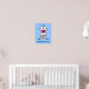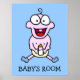 Happy little pink baby wearing blue socks. Fun poster for decorating your baby’s room. Personalise with your baby’s name. Original cartoon art by Taylor Addams.