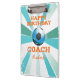 Happy Bday Soccer Coach Orange/Teal/Blue Starburst Clipboard