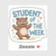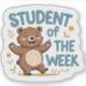 Make every student feel special with this cheerful Student of the Week sticker! Featuring a very happy bear and bold blue lettering, this design is perfect for recognising student achievements in a fun, encouraging way.