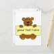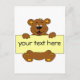 This happy teddy bear cartoon is holding a banner in which you can write your personal message or your name.