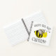 Spiral notebook design features an original marker illustration of a black and yellow striped bumblebee, with HAPPY BEE DAY in a fun font. Simply personalise for a unique birthday party favour.