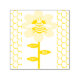 This awesome self inking stamp features a graphic image of a cute yellow bumblebee with black stripes, eyes, antennae and legs. It has pretty blue and white wings. The bee is sitting on the middle of a golden yellow sunflower. The flower has a green stalk and three leaves. The message "happy bee day" appears spread over the three leaves. The background is composed of a yellow honeycomb pattern.