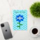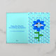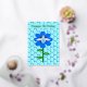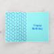 This awesome Foil card features a graphic image of a cute blue bumblebee with bright blue stripes, black eyes, blue antennae and black legs. It has pretty blue and white wings. The bee is sitting on the middle of a pretty blue sunflower. The flower has a green stalk and three leaves. The message "Bee Day boy" appears spread over the three leaves. The background is composed of a pale blue honeycomb pattern. There is custom text on the inside the card so you can personalise this card. The greeting on the front is in beautiful silver foil.