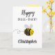 Send a special bee-day greeting with this cute and funny bee birthday card. The name on the front can easily be personalised for that special person and the inside of the greeting card is blank for you to hand write a personal message.
