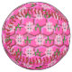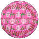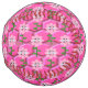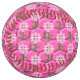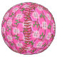 This awesome softball features a graphic image of a cute pink bumblebee with bright pink stripes, black eyes, pink antennae and black legs. It has pretty blue and white wings. The bee is sitting on the middle of a pretty pink sunflower. The flower has a green stalk and three leaves. The message "Bee Day Girl" appears spread over the three leaves. The background is composed of a bright pink honeycomb pattern.