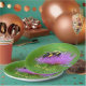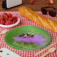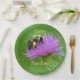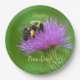 These birthday paper plates feature a beautiful image of a bee gathering nectar from a purple thistle.