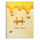 Yellow, white background with a honeycomb pattern. Decorated with sweet, golden dripping honey and happy bumble bees. Templates for your name and monogram letter, and a book title.