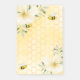 Add some fun and humour to your summer grocery shopping lists or home office! Yellow, white background with a honeycomb pattern. Decorated with light yellow, cream coloured tropical flowers, florals, hibiscus and happy smiling bumble bees.