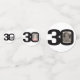 30th birthday black and white graphic stripe and text party confetti. Great to add a personal touch to a surprise birthday party. Personalise with three of your birthday boys or girls photos in the 0 of 30 and personalise with your choice of name. Design by Sarah Trett for www.mylittleeden.com