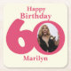 Happy birthday 60 name and photo paper coasters