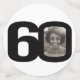 60th birthday black and white graphic stripe and text party confetti. Great to add a personal touch to a surprise birthday party. Personalise with three of your birthday boys or girls photos in the 0 of 60 and personalise with your choice of name. Design by Sarah Trett for www.mylittleeden.com