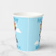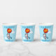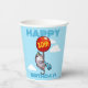 Use "Personalise this template" to change the age or "HAPPY BIRTHDAY!" text, text changes are reflected on both sides. Brighten up a birthday party with these paper cups featuring a cute opossom in a striped party hat, floating by on a big red balloon while blowing a star spangled party blower.
