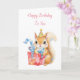 A sweet birthday card for her, with a watercolor squirrel in a birthday hat holding a gift. Inside is a sweet message wishing someone a birthday full of surprises!
