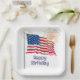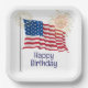 American flag with "Happy Birthday" text and gold fireworks on white.