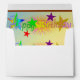 This birthday sign or banner is designed with "Happy Birthday" in different colours. Stars in purple, red, gold and multi colours, and a bright yellow sun with rays are used as a backdrop. This is an invitation envelope that matches the invitation and RSVP card "Happy Birthday and Stars". On the back is the banner with a rainbow coloured backround added along with a brown border. This envelope can be customised with all your own information.