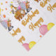 This tissue paper showcases the words "Happy Birthday" in a unique print font with orange letters yellow outline with various jungle animals, birthday party balloons and streamers in this birthday theme and style. Heavier paper weight provides more padding for delicate or heavier items with full colour edge to edge printing on 18lb paper. Great any gift giving occasion for anything, from birthdays, graduation, weddings or anniversaries.