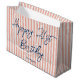 Happy Birthday Any Age Custom Name Striped Coral Large Gift Bag
