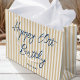 Happy Birthday Any Age Custom Name Striped Gold Large Gift Bag