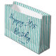 Happy Birthday Any Age Custom Name Striped Mint Large Gift Bag